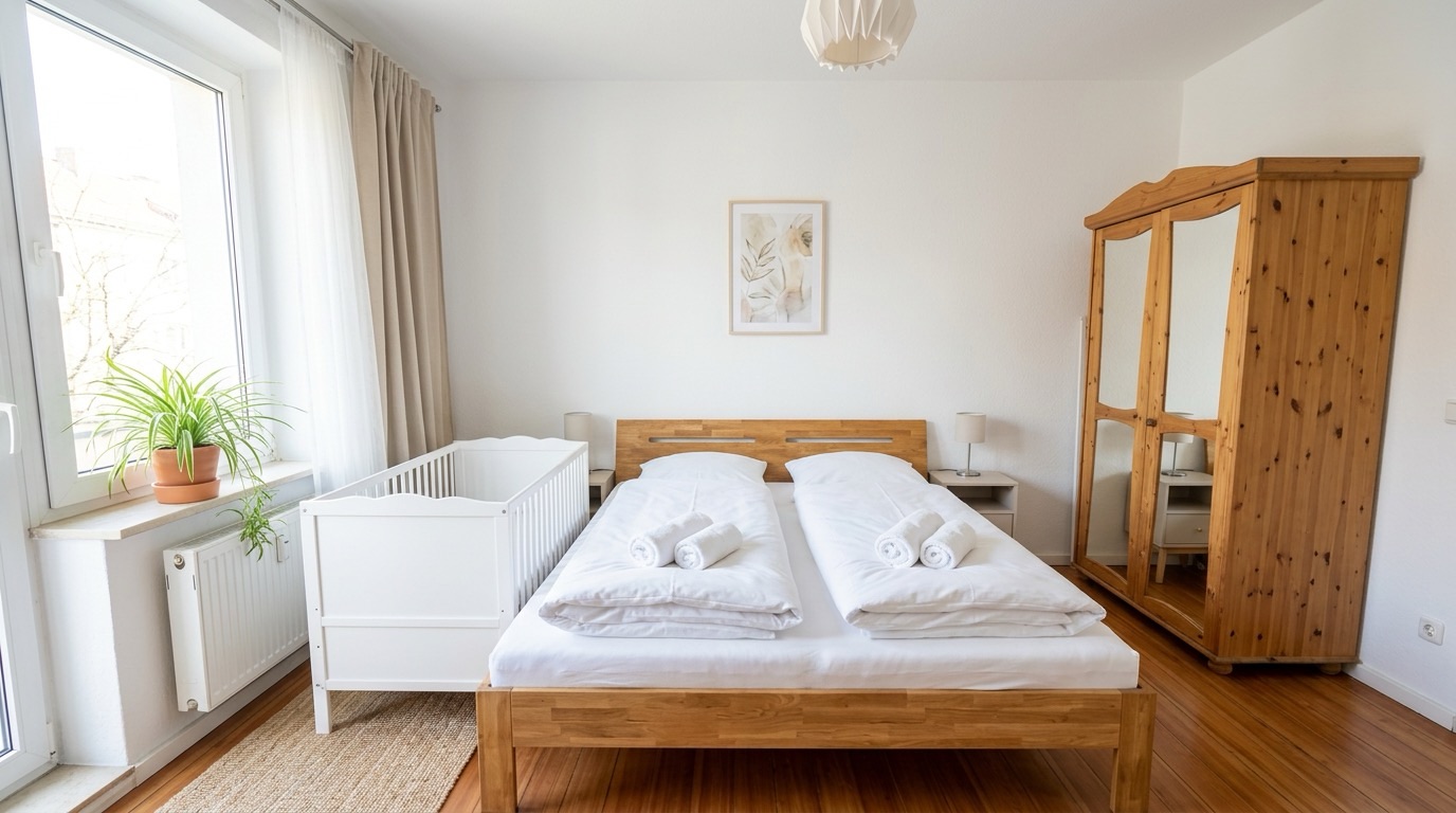 Im großzügigen Familienapartment genießt ihr auf 70 m² viel Platz für einen entspannten Urlaub mit euren Liebsten. Die moderne und komfortabel eingerichtete Unterkunft bietet Raum für 1–5 Gäste. Das Familiennest verfügt über zwei separate Schlafzimmer – eines mit Doppelbett und eines mit Einzel(hoch)bett – sowie ein gemütliches Wohnzimmer mit Schlafsofa. Die voll ausgestattete Küche lädt zum gemeinsamen Kochen ein, während der Balkon mit Blick auf den Innenhof zum Verweilen im Freien einlädt.
